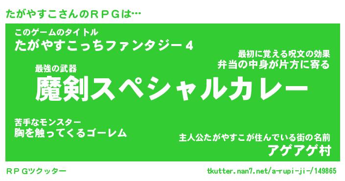 | ファンタジー風あだ名 | 『タガフェル』『エターナルタガヤスコー』 |