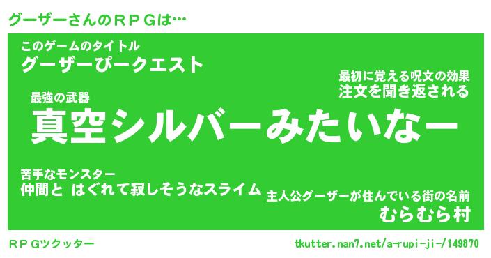 | ファンタジー風あだ名 | 『グーフェル』『エターナルグーザーー』 |