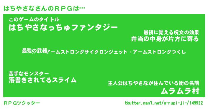 | ファンタジー風あだ名 | 『ハチフェル』『エターナルハチヤサナー』 |