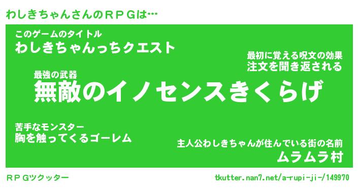 | 男性向けラノベタイトル風あだ名 | 『ワシキチャンアートオンライン』 |