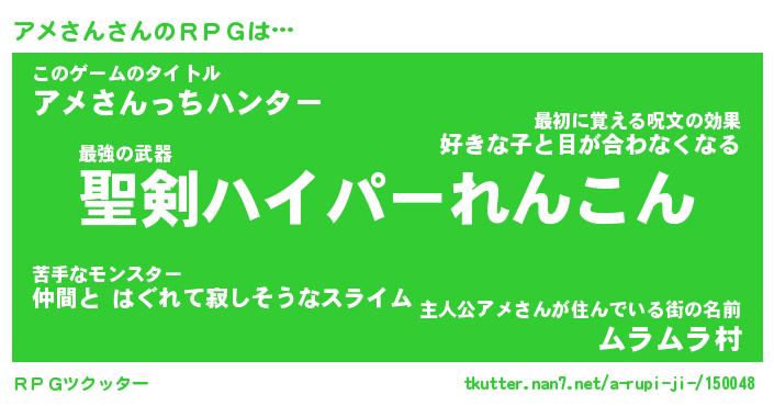 | 伝説のあだ名 | 『伝説の竜騎士アメさん』 |