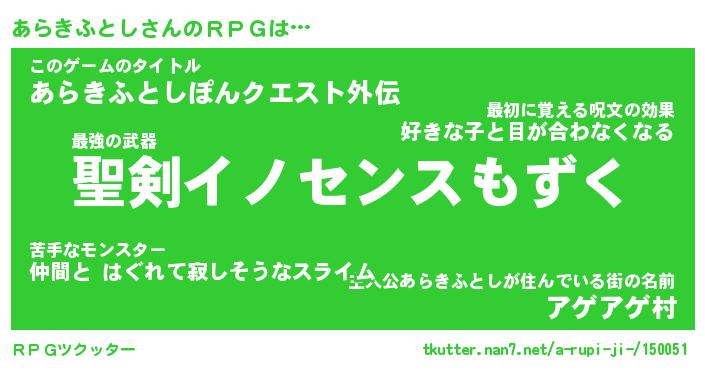 | 胡散臭い通販商品みたいなあだ名 | 『必ず成功する霊験あらたかなお札…その名も「あらきふとし」』 |