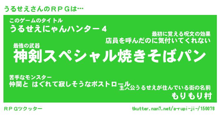 | ファンタジー風あだ名 | 『ウルフェル』『エターナルウルセエー』 |