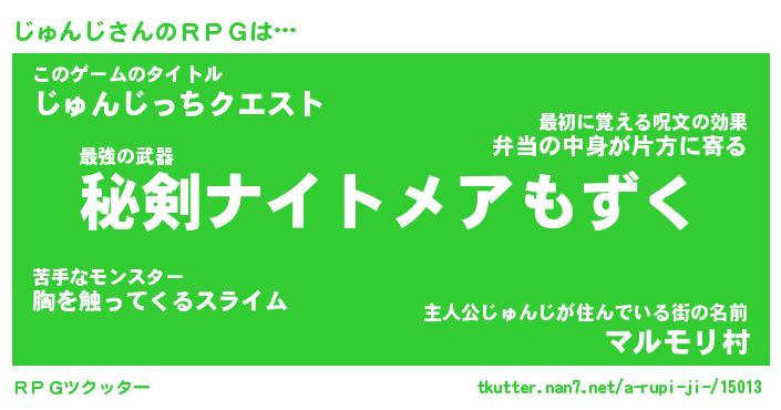 | 男性向けラノベタイトル風あだ名 | 『じゅんじの憂鬱』 |