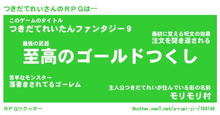 | 男性向けラノベタイトル風あだ名 | 『ツキダテレイアートオンライン』 |