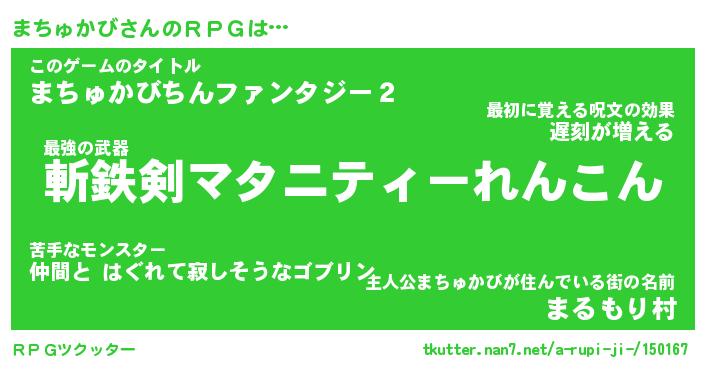 | ファンタジー風あだ名 | 『マチフェル』『エターナルマチュカビー』 |
