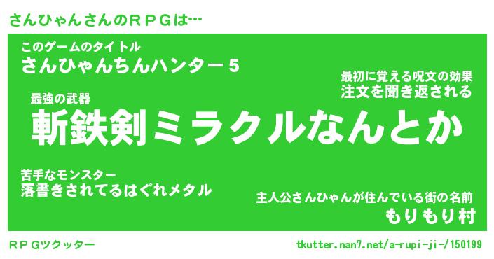 | 男性向けラノベタイトル風あだ名 | 『さんひゃんの憂鬱』 |