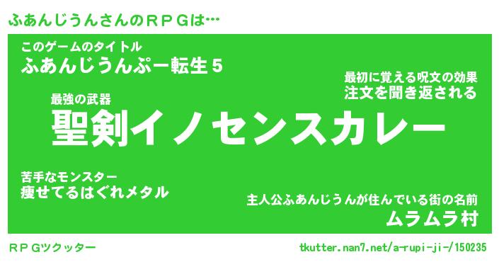| 胡散臭い通販商品みたいなあだ名 | 『必ず成功する霊験あらたかなお札…その名も「ふあんじうん」』 |