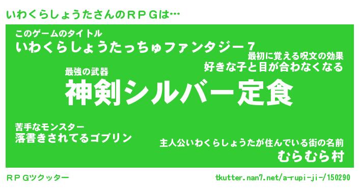 | 男性向けラノベタイトル風あだ名 | 『いわくらしょうたの憂鬱』 |