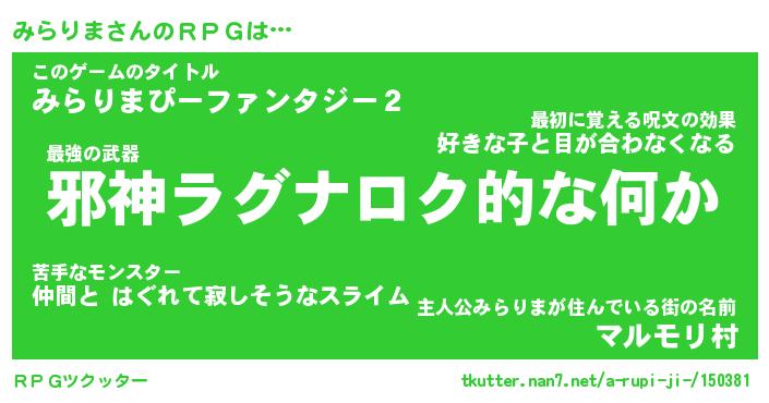 | 伝説のあだ名 | 『封印されし竜騎士みらりま』 |