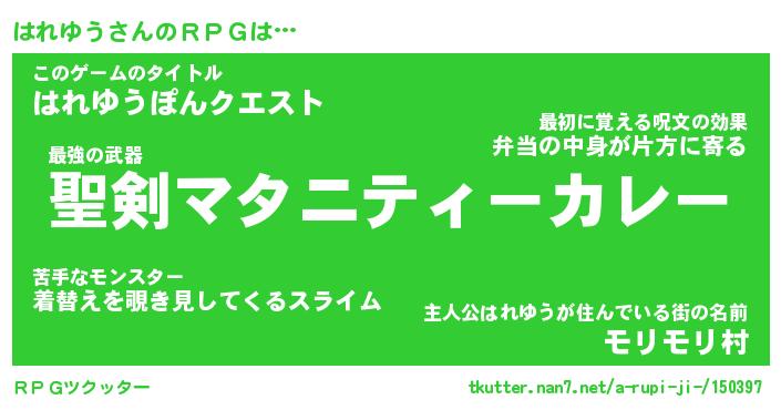 | 男性向けラノベタイトル風あだ名 | 『はれゆうの憂鬱』 |