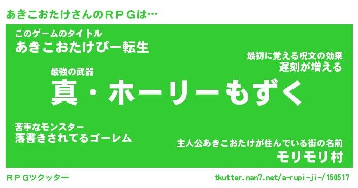 | 男性向けラノベタイトル風あだ名 | 『アキコオタケアートオンライン』 |