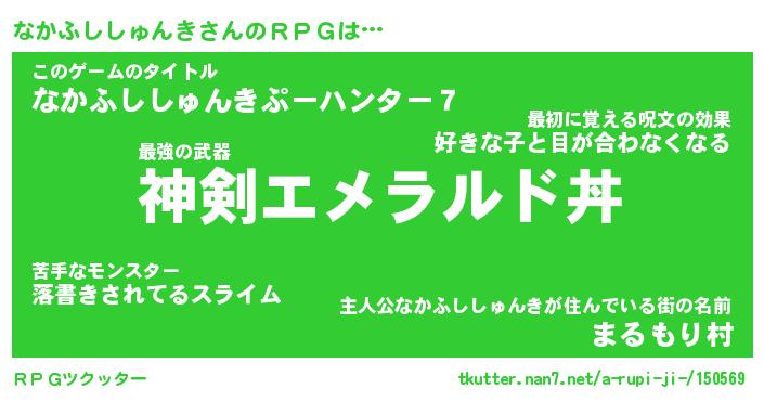 | 男性向けラノベタイトル風あだ名 | 『なかふししゅんきの憂鬱』 |