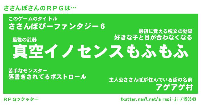 | 伝説のあだ名 | 『封印されしスナイパーささんぼ』 |