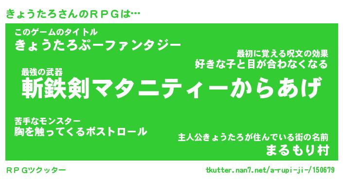 | 男性向けラノベタイトル風あだ名 | 『きょうたろの憂鬱』 |