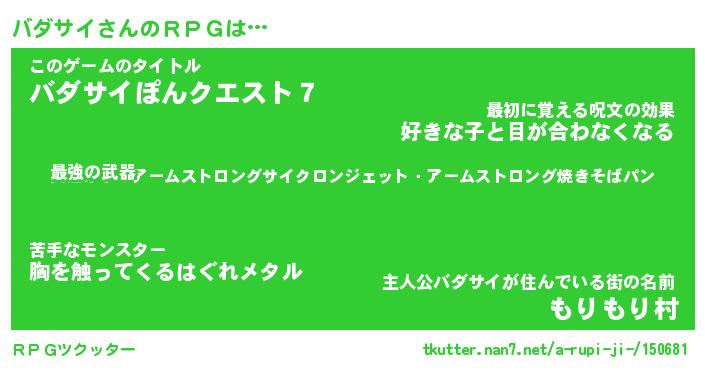 | 男性向けラノベタイトル風あだ名 | 『バダサイの憂鬱』 |