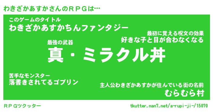| 伝説のあだ名 | 『封印されし竜騎士わきざかあすか』 |