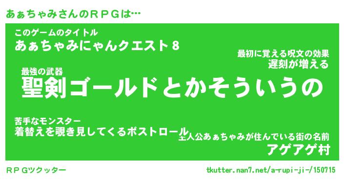 | ファンタジー風あだ名 | 『アァフェル』『エターナルアァチャミー』 |