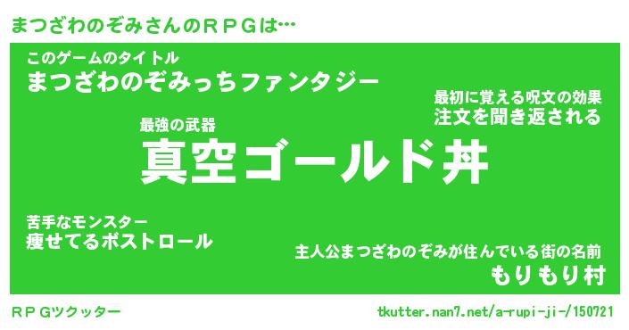 | 伝説のあだ名 | 『封印されし傭兵まつざわのぞみ』 |