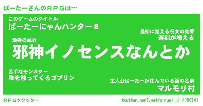 | ファンタジー風あだ名 | 『バーフェル』『エターナルバーターー』 |