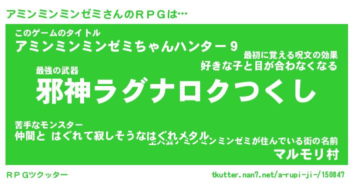 | 伝説のあだ名 | 『封印されし竜騎士アミンミンミンゼミ』 |