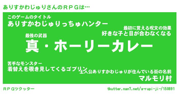 | 伝説のあだ名 | 『封印されし傭兵ありすかわじゅり』 |