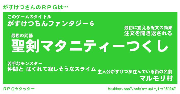 | 胡散臭い通販商品みたいなあだ名 | 『必ず成功する霊験あらたかなお札…その名も「がすけつ」』 |