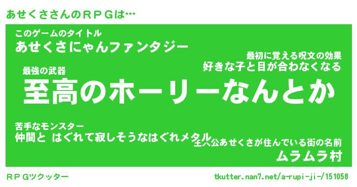 | ファンタジー風あだ名 | 『アセフェル』『エターナルアセクサー』 |