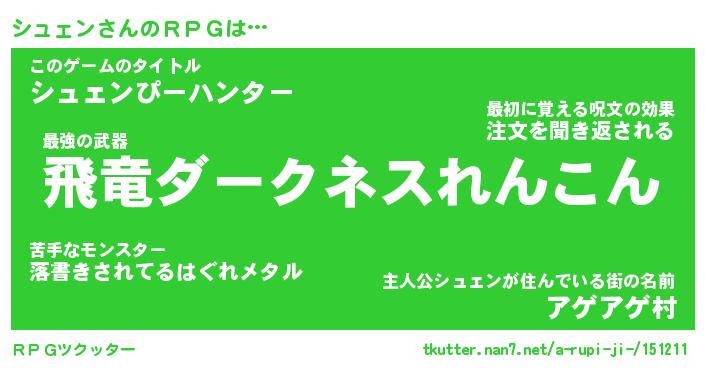 | ヒーロー風カッコイイあだ名 | 『スーパーシュェン』『魔戒騎士シュ』 |