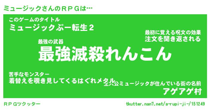| 料理風あだ名 | 『節約★ミュージックと油揚げの玉子丼』 |