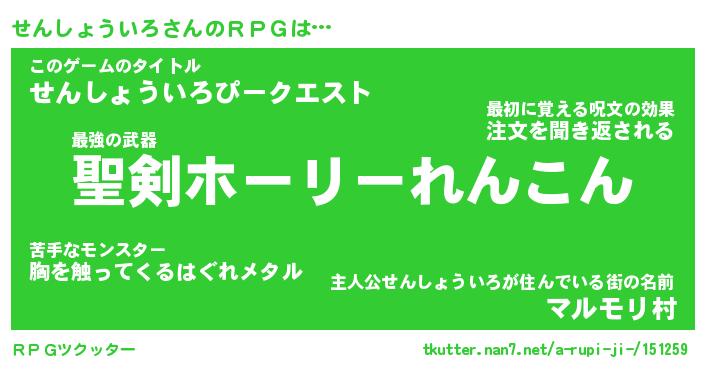 | 胡散臭い通販商品みたいなあだ名 | 『必ず成功する水晶球…その名も「せんしょういろ」』 |