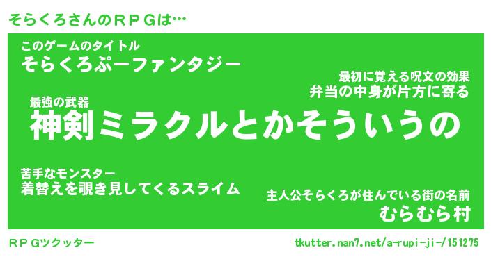 | 胡散臭い通販商品みたいなあだ名 | 『モテモテ間違いなしブレスレット…その名も「そらくろ」』 |