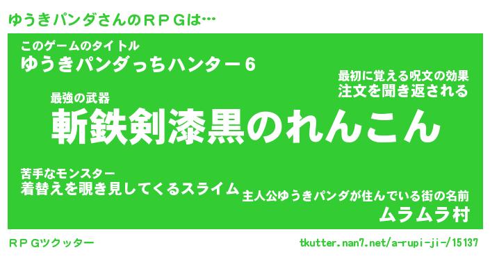 | 男性向けラノベタイトル風あだ名 | 『ゆうきパンダの憂鬱』 |