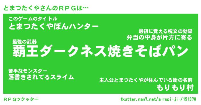 | 胡散臭い通販商品みたいなあだ名 | 『億万長者になれる水晶球…その名も「とまつたくや」』 |