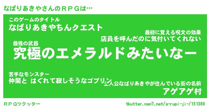 | 胡散臭い通販商品みたいなあだ名 | 『モテモテ間違いなし霊験あらたかなお札…その名も「なばりあきや」』 |
