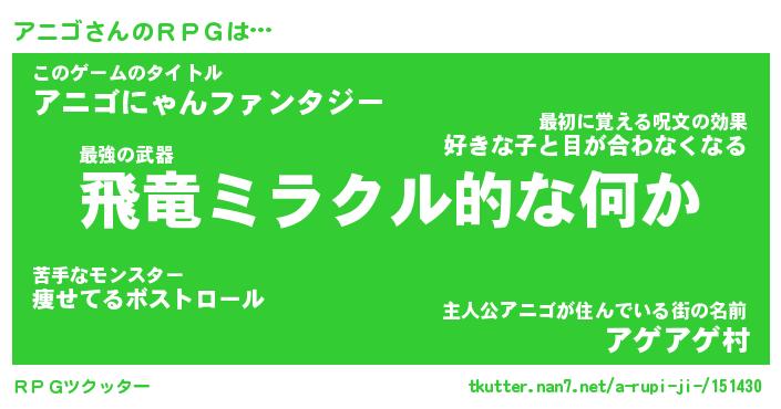 | 男性向けラノベタイトル風あだ名 | 『アニゴアートオンライン』 |