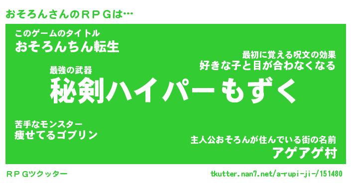 | ファンタジー風あだ名 | 『オソフェル』『エターナルオソロンー』 |