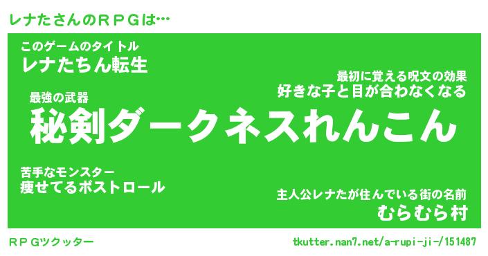 | ファンタジー風あだ名 | 『レナフェル』『エターナルレナター』 |