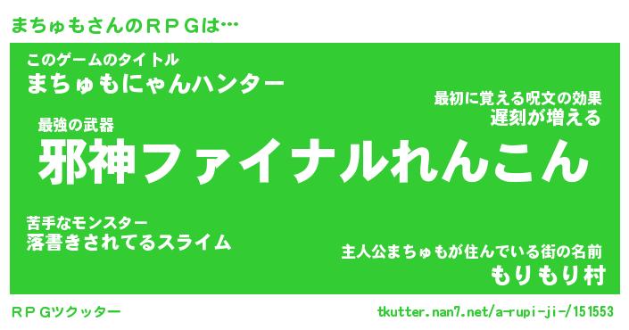 | 伝説のあだ名 | 『封印されし傭兵まちゅも』 |