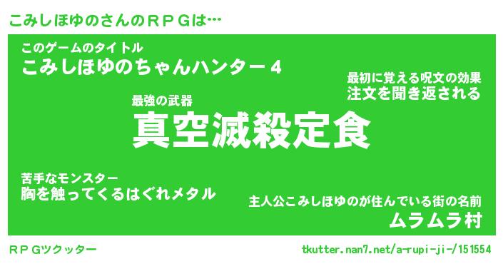 | 伝説のあだ名 | 『封印されしスナイパーこみしほゆの』 |