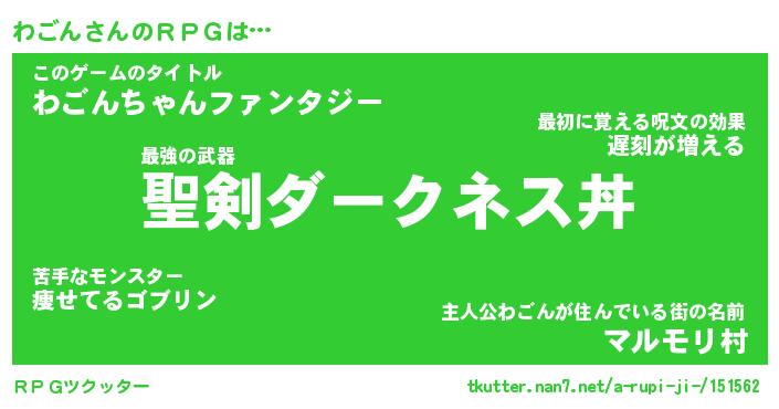 | 男性向けラノベタイトル風あだ名 | 『わごんの憂鬱』 |