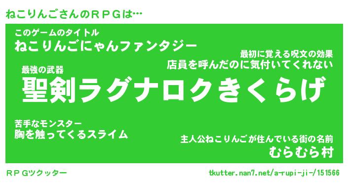 | ファンタジー風あだ名 | 『ネコフェル』『エターナルネコリンゴー』 |