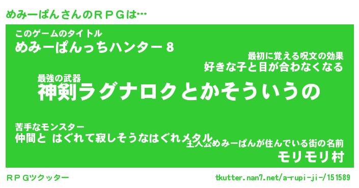 | ファンタジー風あだ名 | 『メミフェル』『エターナルメミーパンー』 |