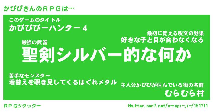 | 伝説のあだ名 | 『伝説の傭兵かぴぴ』『最強の忍者かぴぴ』 |