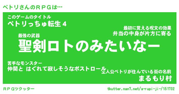 | ファンタジー風あだ名 | 『ペトフェル』『エターナルペトリー』 |