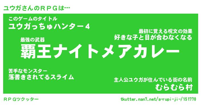 | ファンタジー風あだ名 | 『ユウフェル』『エターナルユウガー』 |
