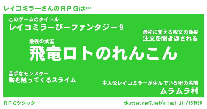 | 伝説のあだ名 | 『封印されし竜騎士レイコミラー』 |