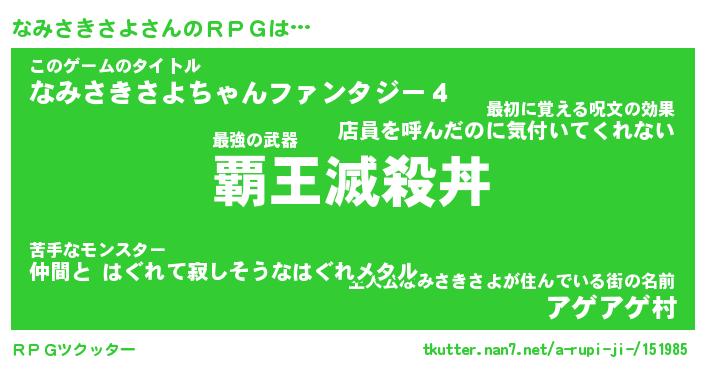 | 伝説のあだ名 | 『封印されしスナイパーなみさきさよ』 |