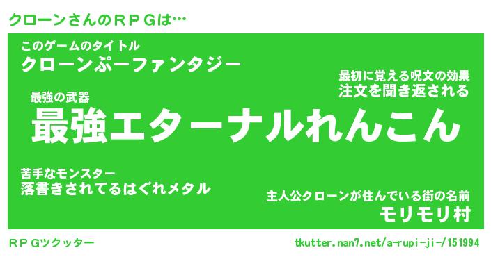 | 意味不明あだ名 | 『ペロリンクローン』『永久保存クローン』 |