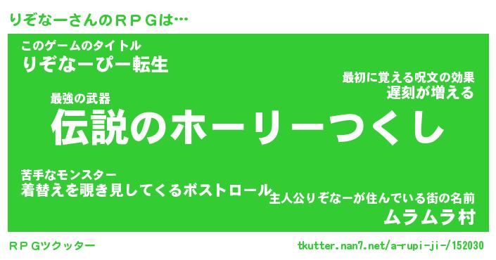 | 男性向けラノベタイトル風あだ名 | 『りぞなーの憂鬱』 |